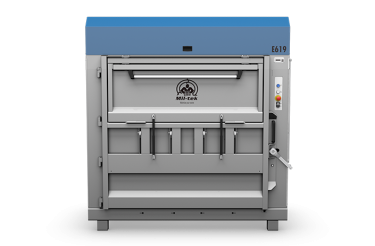 La pressa elettrica E619 16A è una pressa elettrica di grandi dimensioni e ad altezza ridotta. È ideale per le aziende che producono molti scarti di cartone e materiale plastico da imballaggio.